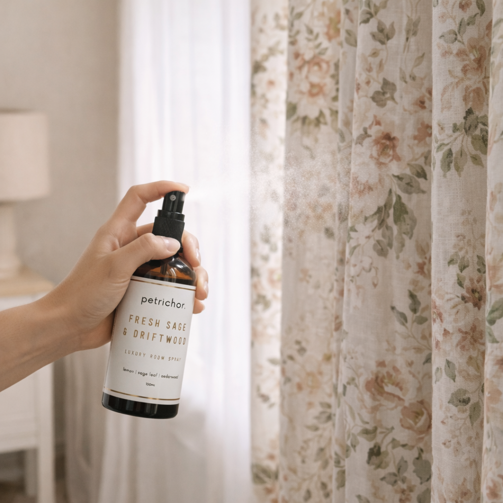 Designed to refresh your space instantly, our Fresh Sage & Driftwood Room Spray can be lightly misted onto linen, soft furnishings, closets, and rooms. Use it on its own for a clean, calming lift or layer it with the Fresh Sage & Driftwood candle to create a longer-lasting, immersive scent throughout your home.